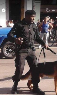 Policia huye frente a los manifestantes. La Habana (Julio 2021)